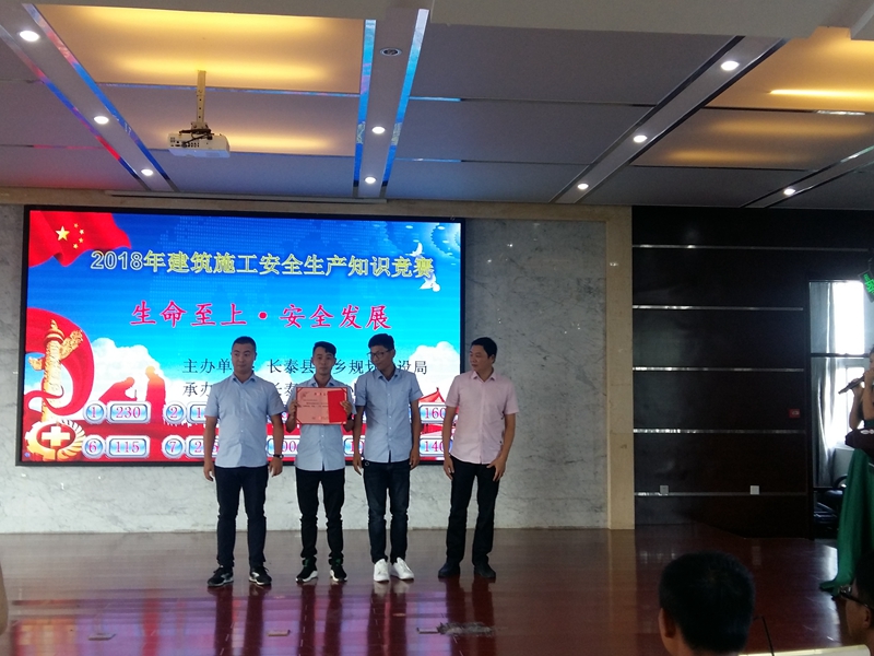 2018年6月25日下午,由長(zhǎng)泰縣城鄉(xiāng)規(guī)劃建設(shè)局主辦、長(zhǎng)泰縣建筑業(yè)協(xié)會(huì)承辦以“生命至上、安全發(fā)展”為主題的“長(zhǎng)泰縣2018年建筑施工企業(yè)安全生產(chǎn)知識(shí)競(jìng)賽”活動(dòng)。