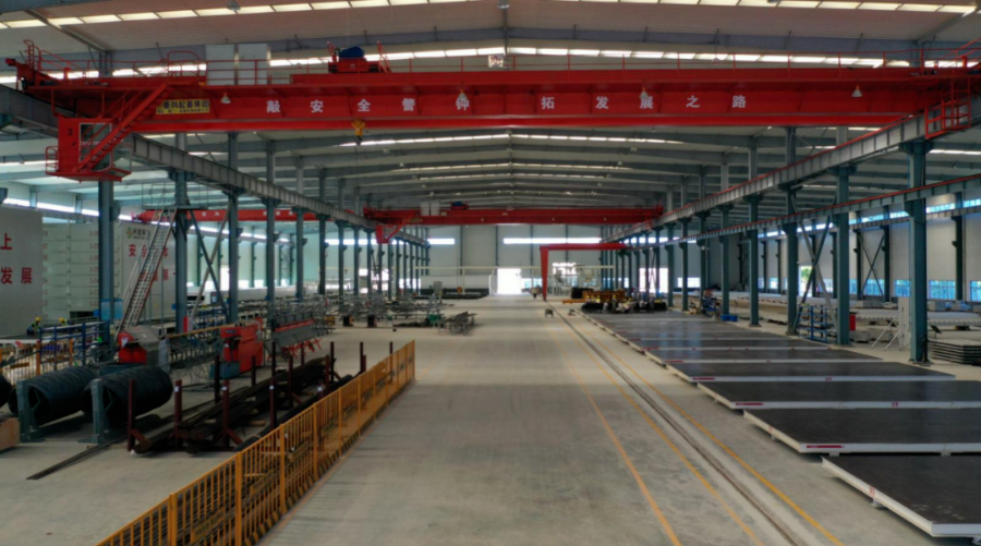 項目計劃總投資5億,一期計劃投資2.6億;占地面積200畝,兩棟鋼構(gòu)廠房3萬平方米,露天成品構(gòu)件堆場4萬平方米;擁有2條自動生產(chǎn)線、2條固定生產(chǎn)線、桁架筋設(shè)備、自動調(diào)直彎箍剪切鋼筋設(shè)備;中央控制室可對生產(chǎn)線的運行情況進(jìn)行實時監(jiān)控,并且配備有PMS及ERP操作平臺,可實現(xiàn)生產(chǎn)線設(shè)備的遠(yuǎn)程控制及生產(chǎn)數(shù)據(jù)的信息化管理;年產(chǎn)能力達(dá)到12萬m3以上裝配式建材,年產(chǎn)值3.6億。