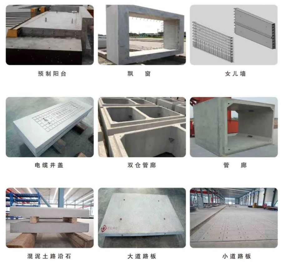 興巖科技目前設(shè)計、生產(chǎn)、施工、研發(fā)的裝配式建筑部品部件類型主要有預(yù)制疊合板、預(yù)制疊合梁、預(yù)制樓梯、預(yù)制空調(diào)板、預(yù)制陽臺、預(yù)制飄窗、預(yù)制柱、預(yù)制內(nèi)墻、預(yù)制外墻、預(yù)制疊合管廊構(gòu)件、預(yù)制道路板、預(yù)制地鐵管片等,基本涵蓋裝配式建筑產(chǎn)業(yè)所有類型的構(gòu)件。