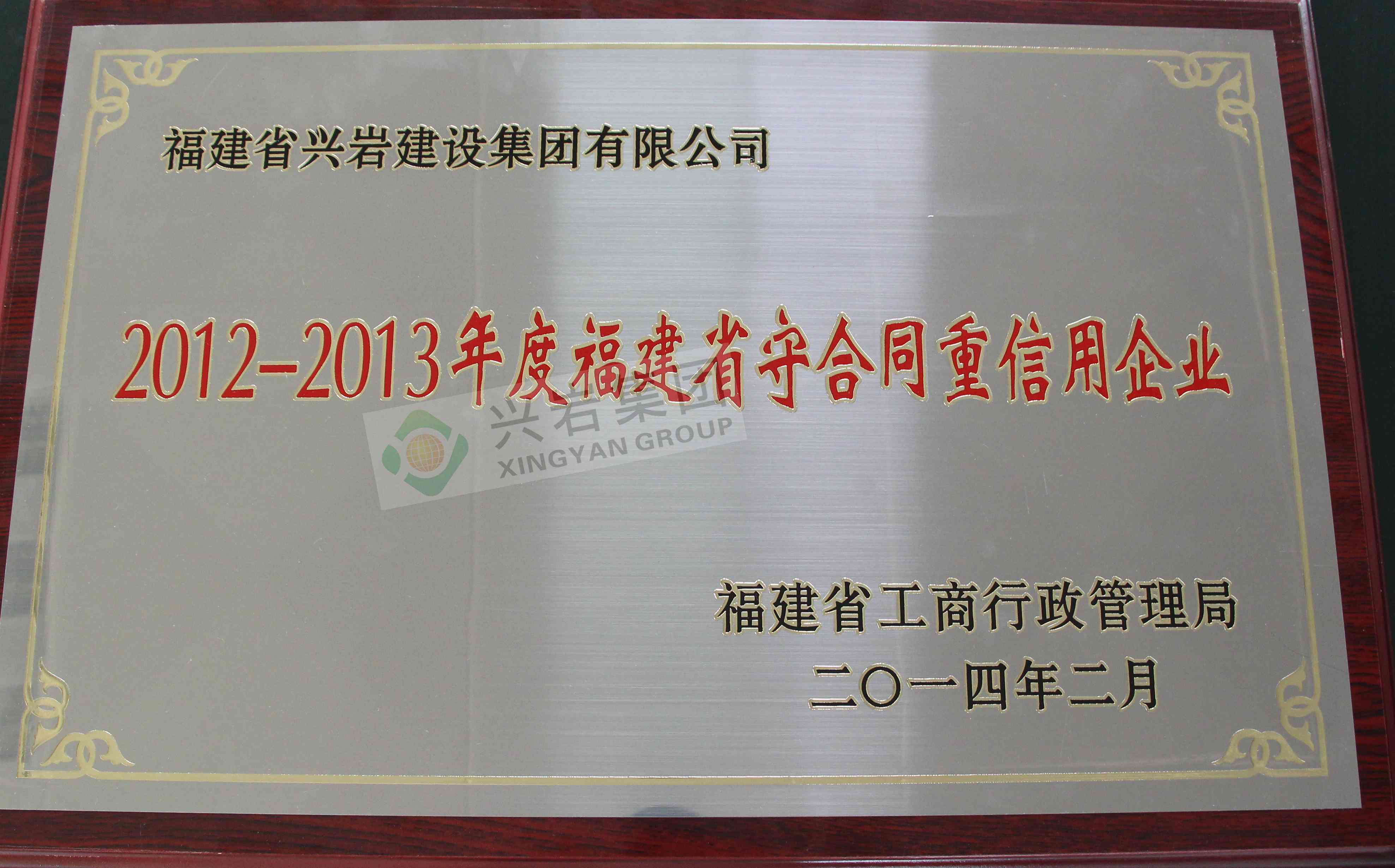 熱烈祝賀我公司獲得2012-2013年度福建省守合同重信用企業(yè)稱(chēng)號(hào)。