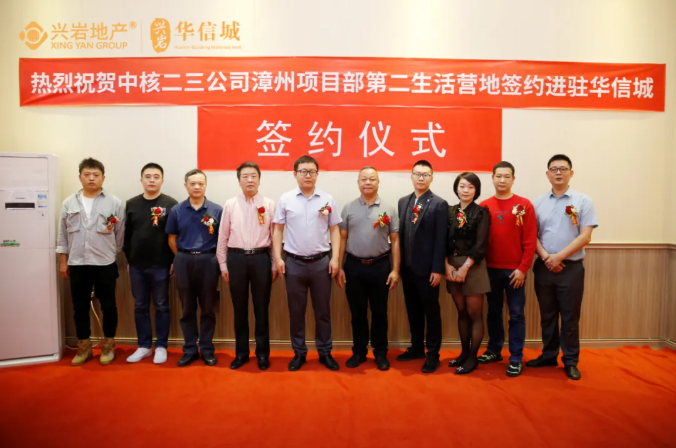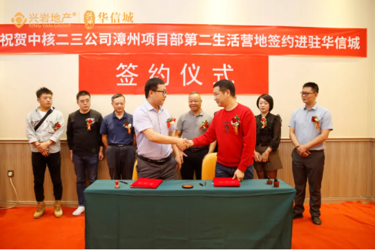 2021年10月24日,"中核二三公司漳州項(xiàng)目部第二生活營地進(jìn)駐華信城"簽約儀式在興巖·華信城營銷中心舉辦。