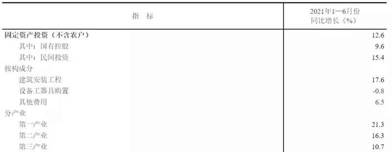 1-6月份,全國(guó)固定資產(chǎn)投資(不含農(nóng)戶)255900億元,同比增長(zhǎng)12.6%;比2019年1-6月份增長(zhǎng)9.1%,兩年平均增長(zhǎng)4.4%。其中,民間固定資產(chǎn)投資147957億元,同比增長(zhǎng)15.4%。從環(huán)比看,6月份固定資產(chǎn)投資(不含農(nóng)戶)增長(zhǎng)0.35%。