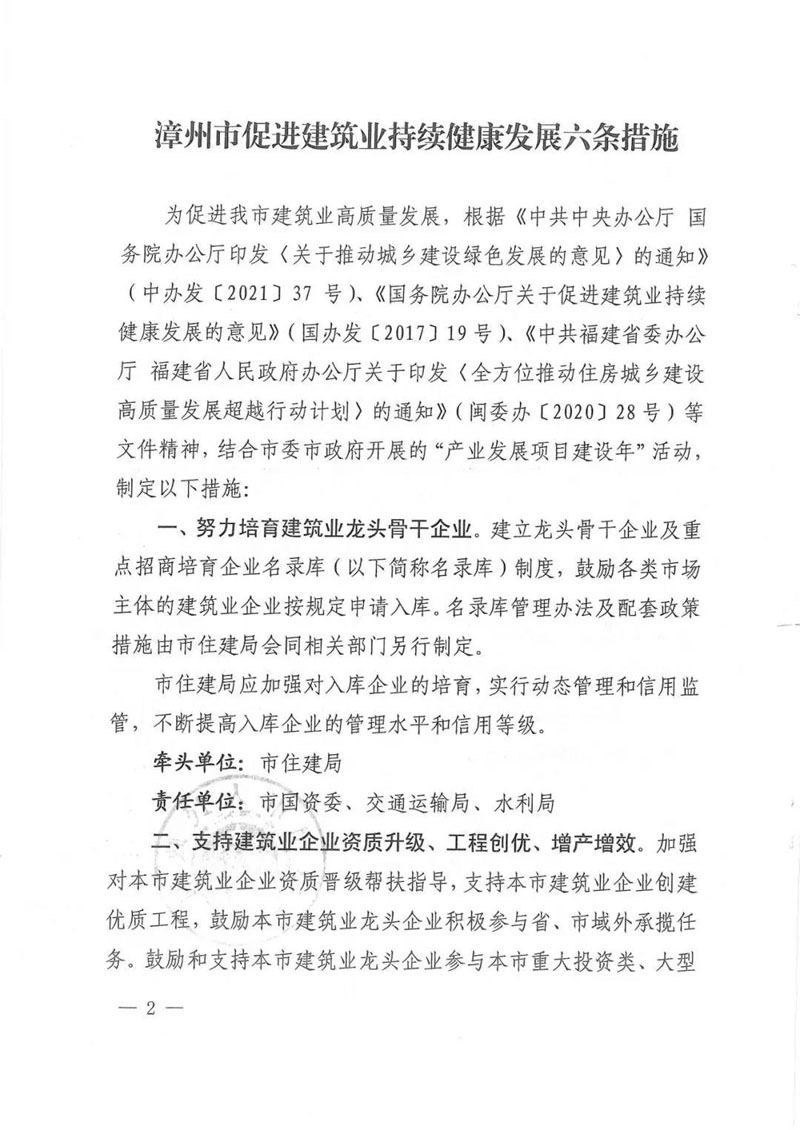 附《漳州市促進(jìn)建筑業(yè)持續(xù)健康發(fā)展六條措施》