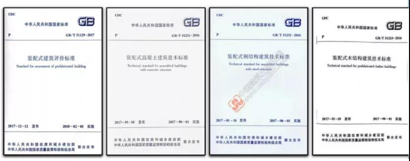 在國家引導(dǎo)和大力扶持下,裝配式建筑正朝著規(guī)范化方向穩(wěn)步發(fā)展,現(xiàn)行標(biāo)準(zhǔn)不斷完善。目前,我國在裝配式建筑領(lǐng)域遵循的國家標(biāo)準(zhǔn)主要有一本評(píng)價(jià)標(biāo)準(zhǔn)、三本技術(shù)標(biāo)準(zhǔn)。
