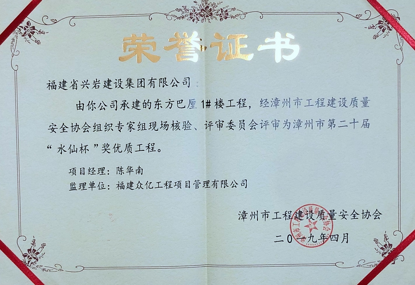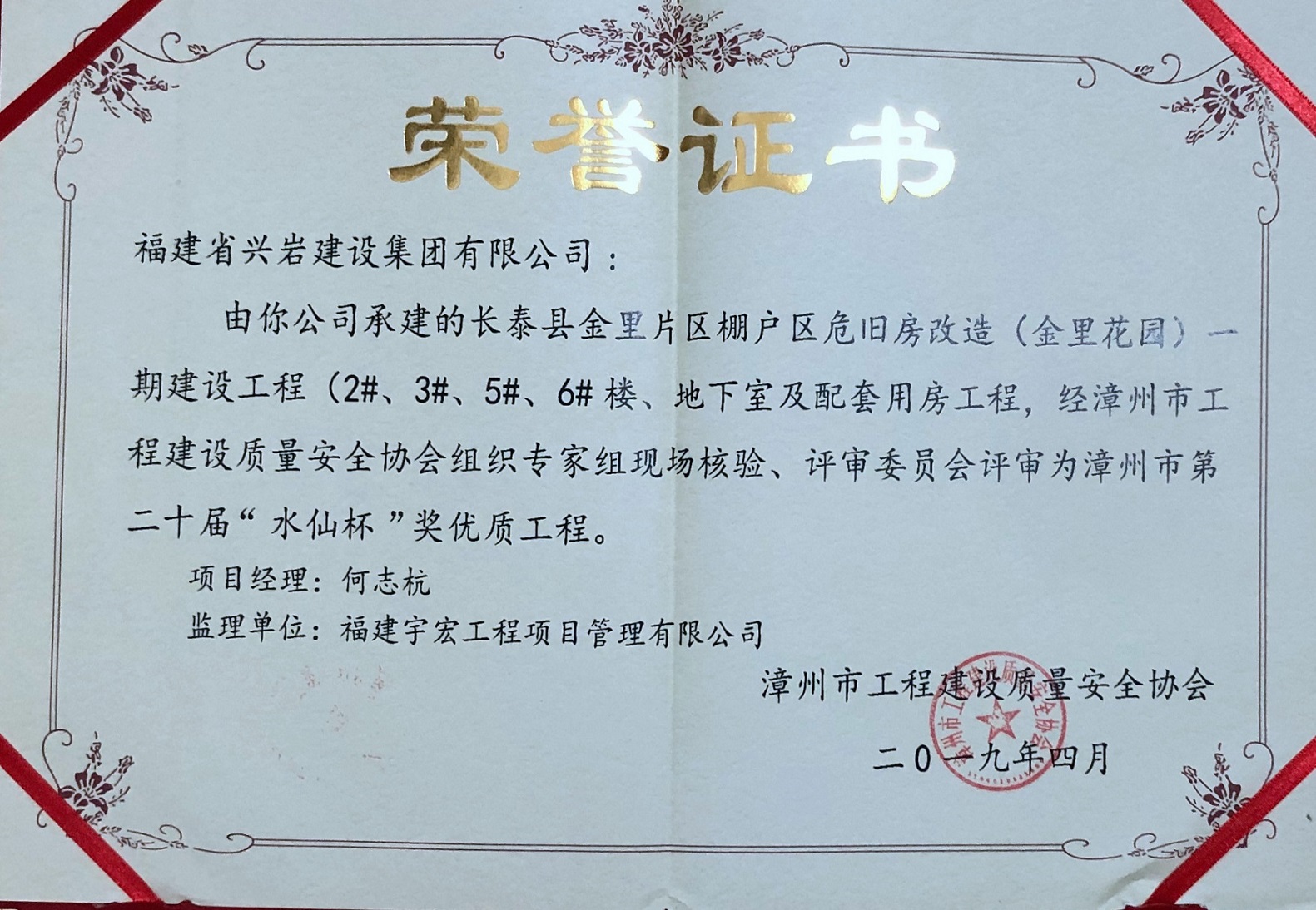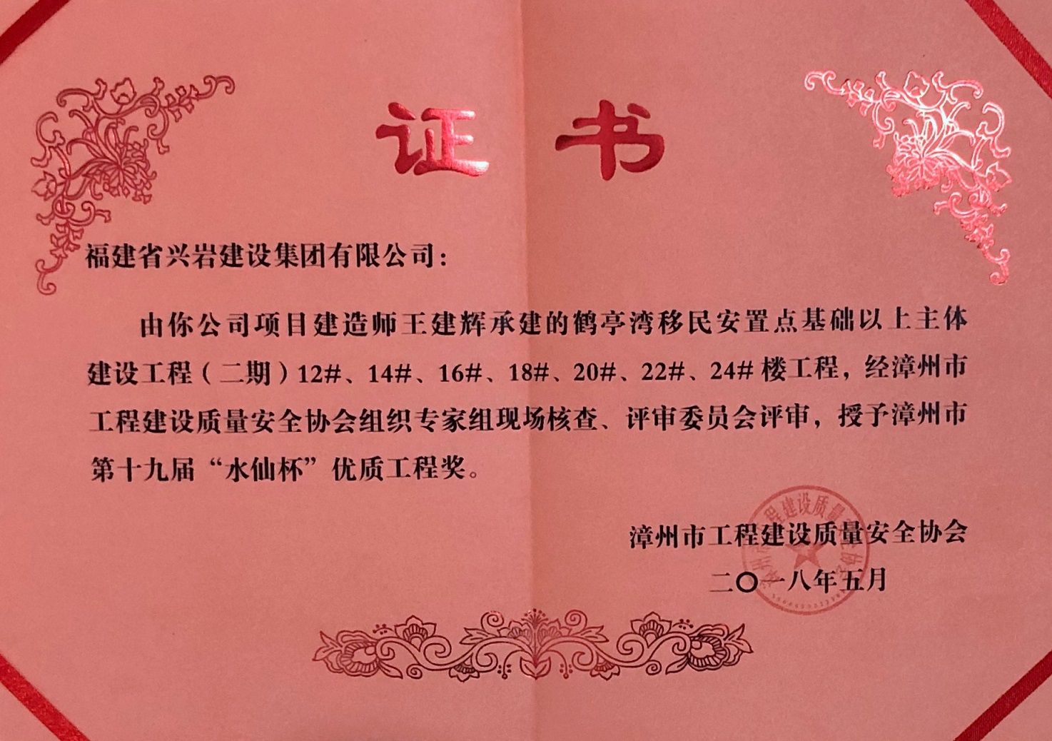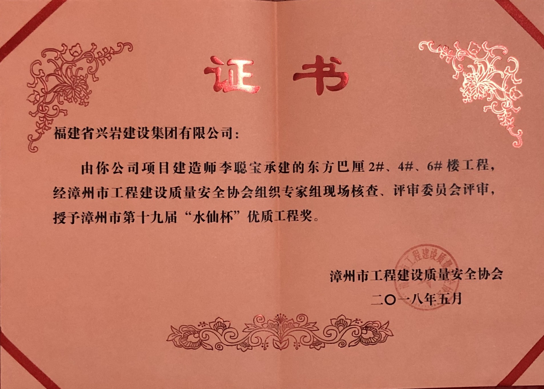“十九屆”水仙杯優(yōu)質(zhì)工程獎