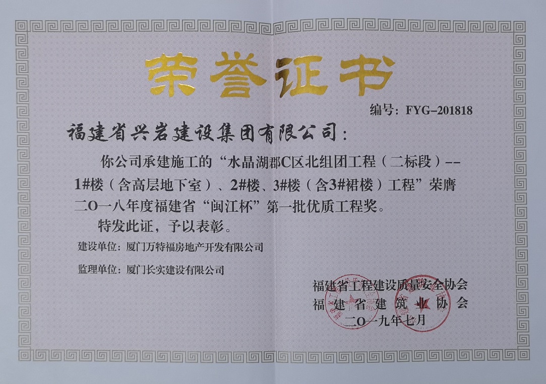 閩江杯第一批優(yōu)質(zhì)工程獎