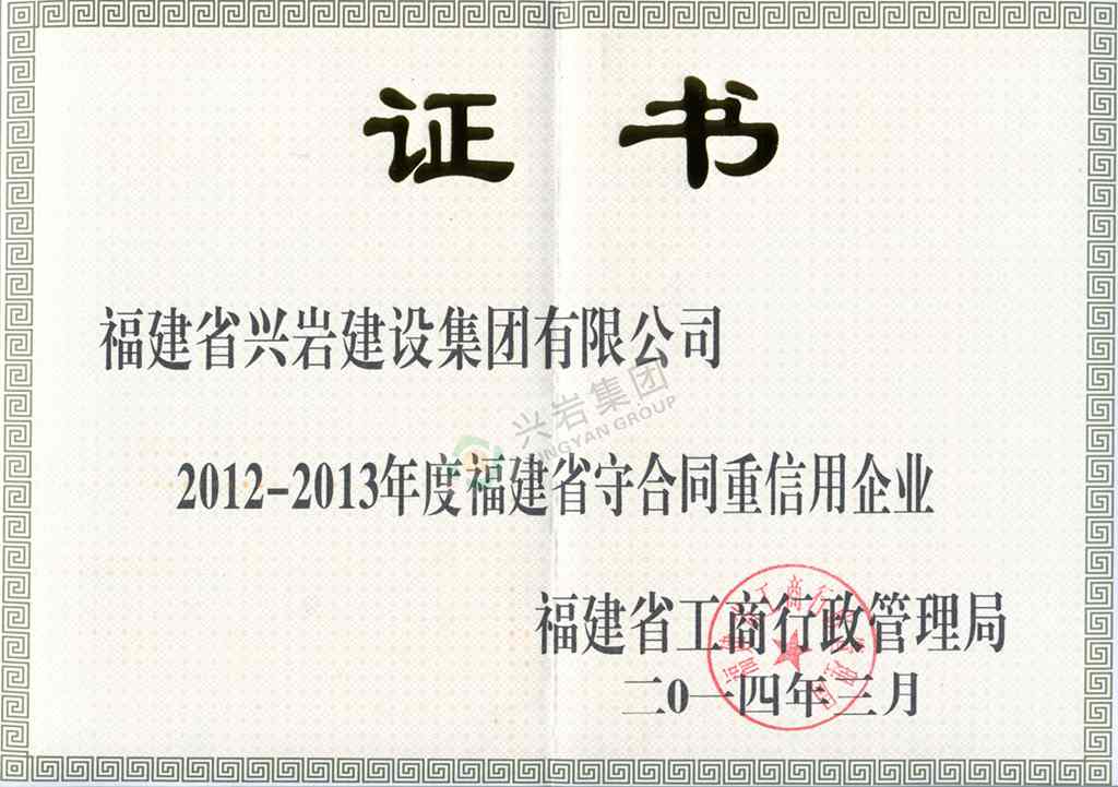 20122013年度福建省守合同重信用企業(yè)證書