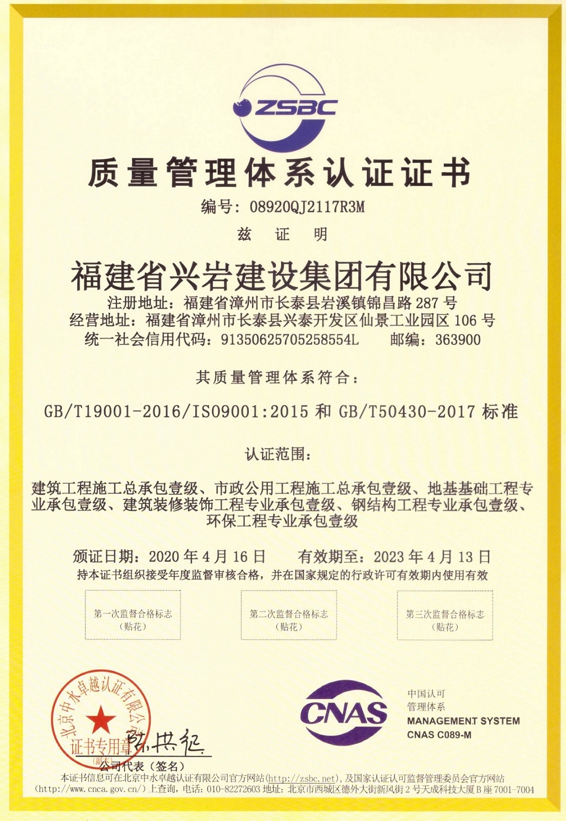 質(zhì)量管理體系認(rèn)證證書