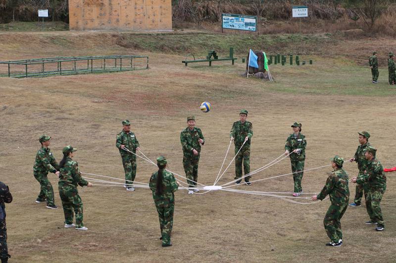 在培訓(xùn)教練為大家發(fā)放訓(xùn)練服、建立團(tuán)隊(duì),并交代訓(xùn)練等相關(guān)注意事項(xiàng)之后,一個(gè)個(gè)響亮的團(tuán)隊(duì)口號(hào)和鮮明的隊(duì)旗拉開(kāi)了團(tuán)隊(duì)野訓(xùn)的序幕……接下來(lái),每個(gè)團(tuán)隊(duì)經(jīng)過(guò)了最為激烈又經(jīng)典的“群龍取水”、“高空斷橋”、“ 鼓動(dòng)人心”、“ 畢業(yè)墻”等拓展項(xiàng)目。
