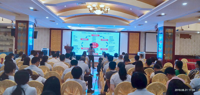 團(tuán)隊(duì)執(zhí)行力是企業(yè)永恒的話題,對(duì)于企業(yè)的管理者而言,其團(tuán)隊(duì)素質(zhì)的好壞、能力的高低,直接影響企業(yè)的經(jīng)營(yíng)與發(fā)展,因此,打造團(tuán)隊(duì)高效執(zhí)行力尤為關(guān)鍵。2018年8月31日下午3時(shí),集團(tuán)在長(zhǎng)泰天福酒店舉辦一場(chǎng)以“提高集團(tuán)管理領(lǐng)導(dǎo)力、管理能力和業(yè)務(wù)水平,打造一支專業(yè)、高效、團(tuán)結(jié)、協(xié)作的企業(yè)團(tuán)隊(duì)”為宗旨的培訓(xùn)會(huì)。此次培訓(xùn)會(huì),集團(tuán)邀請(qǐng)了國(guó)內(nèi)著名的企業(yè)培訓(xùn)專家團(tuán)隊(duì)——深圳市中旭企業(yè)管理股份有限公司的黃訓(xùn)潘老師主講《實(shí)效管理執(zhí)行力內(nèi)訓(xùn)》的課程。集團(tuán)董事長(zhǎng)葉小清,總經(jīng)理王億能以及集團(tuán)各部門、項(xiàng)目部、關(guān)聯(lián)企業(yè)管理人員和員工約120人參加了培訓(xùn)。