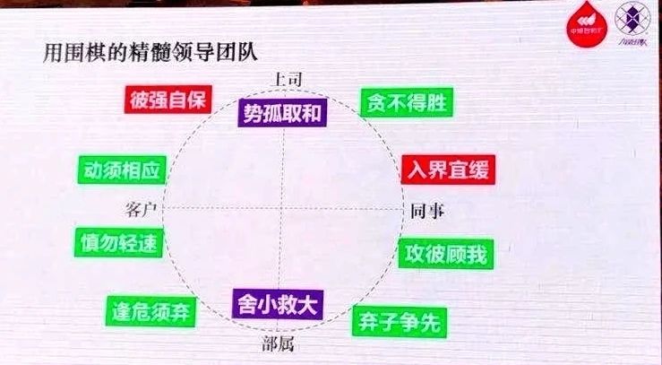 耿磊磊老師從歐文堡訓(xùn)練基地看為何要情景教學(xué)的必要性入手,用19個(gè)情景主題來(lái)推動(dòng)整個(gè)課程的深入。從經(jīng)理人的自我角色到如何管理好自己的上級(jí),如何與同事做好團(tuán)隊(duì)工作,再晉升到如何更好的管理一個(gè)團(tuán)隊(duì),將圍棋的“十大要訣”、“弈“的哲學(xué)、方圓、黑白、圍棋別稱(chēng)等與課程深度整合,讓學(xué)員在19 組工作場(chǎng)景的研討中享受”沖段“的樂(lè)趣。劇情味十足的故事情節(jié),火藥味濃烈的升段競(jìng)賽進(jìn)程,打破傳統(tǒng)的培訓(xùn)模式,讓學(xué)員能輕松地將學(xué)習(xí)內(nèi)容與實(shí)際工作無(wú)縫對(duì)接。