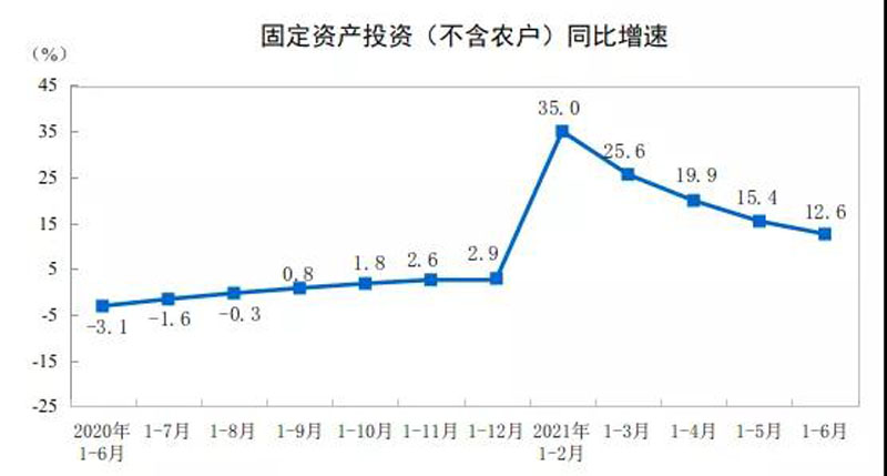1-6月份,全國(guó)固定資產(chǎn)投資(不含農(nóng)戶)255900億元,同比增長(zhǎng)12.6%;比2019年1-6月份增長(zhǎng)9.1%,兩年平均增長(zhǎng)4.4%。其中,民間固定資產(chǎn)投資147957億元,同比增長(zhǎng)15.4%。從環(huán)比看,6月份固定資產(chǎn)投資(不含農(nóng)戶)增長(zhǎng)0.35%。