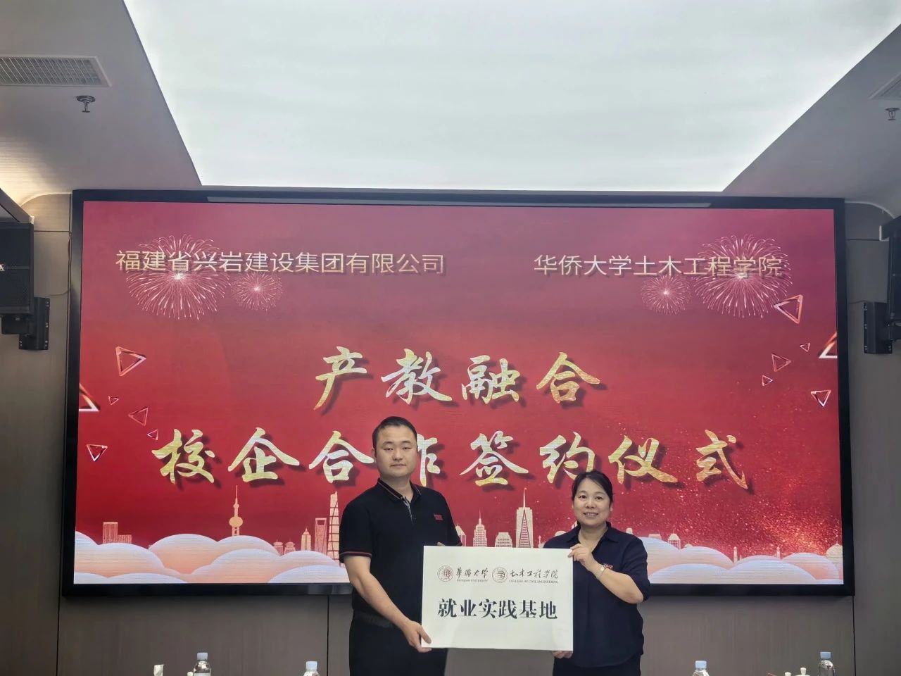 總經(jīng)理葉永斌鄭重接受學(xué)院黨委書記陳雪琴授牌,這一莊重時(shí)刻,標(biāo)志著興巖建設(shè)集團(tuán)與華僑大學(xué)土木工程學(xué)院的合作正式啟航。此次攜手華僑大學(xué),是興巖建設(shè)集團(tuán)在人才戰(zhàn)略布局上的重要舉措。華僑大學(xué)作為知名高校,在土木工程領(lǐng)域擁有雄厚的師資力量與豐富的學(xué)術(shù)資源;興巖建設(shè)集團(tuán)作為行業(yè)內(nèi)的佼佼者,具備豐富的項(xiàng)目實(shí)踐經(jīng)驗(yàn)與廣闊的發(fā)展平臺(tái)。雙方強(qiáng)強(qiáng)聯(lián)合,未來將在人才培養(yǎng)方面,共同探索創(chuàng)新教育模式,為學(xué)生提供理論與實(shí)踐相結(jié)合的優(yōu)質(zhì)學(xué)習(xí)機(jī)會(huì);在實(shí)習(xí)就業(yè)方面,為華大學(xué)子提供更多實(shí)習(xí)崗位與就業(yè)機(jī)會(huì),幫助學(xué)生順利邁向職場;在科研創(chuàng)新方面,整合雙方優(yōu)勢資源,共同攻克行業(yè)技術(shù)難題,推動(dòng)建筑行業(yè)的科技進(jìn)步。